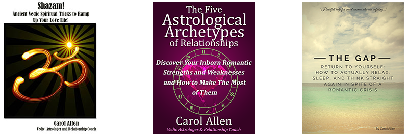 As a Vedic astrologer and relationship coach who’s been happily married since 1997, Carol Allen has made it her mission to show women how the stars combined with their own right actions can help them make the most of their love lives. Her methods are a unique marriage of East and West, combining her training in the astrology of India with cutting-edge, real-world relationship research.
